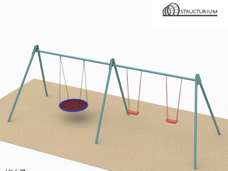 При производстве металлокаркаса Качелей двойных используется труба 76*3мм. Покраска полимерная порошковая с предварительным нанесением цинкосодержащего грунта, цвет бирюзовый. Качели приобретаются отдельно.